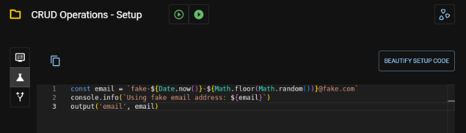 For example, you can create a script to randomly generate an email address. The JavaScript variable $.email will be available during execution of child requests.