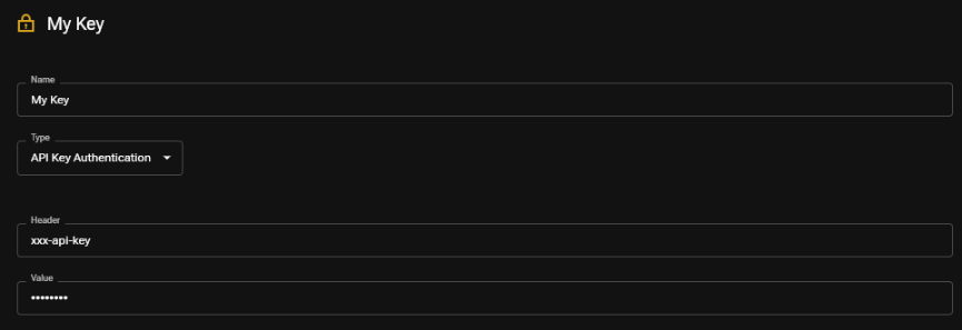 When authorizing using API Key Authorization, the named header and value are included with the request.