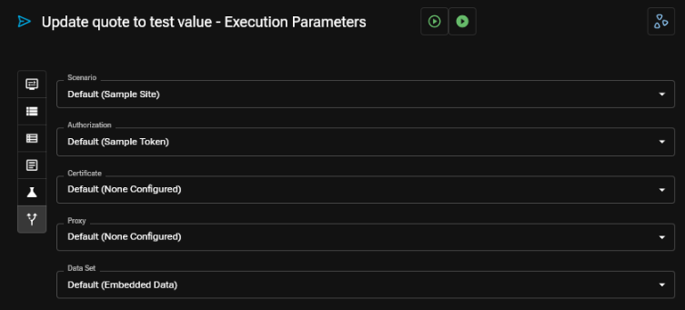 This is pane to set parameters when testing your Request or Group. These parameters include: